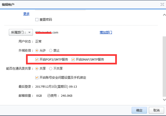 进入邮箱系统-》账户然后绑定账户窗口里面。将POP3及SMTP服务开启即可。