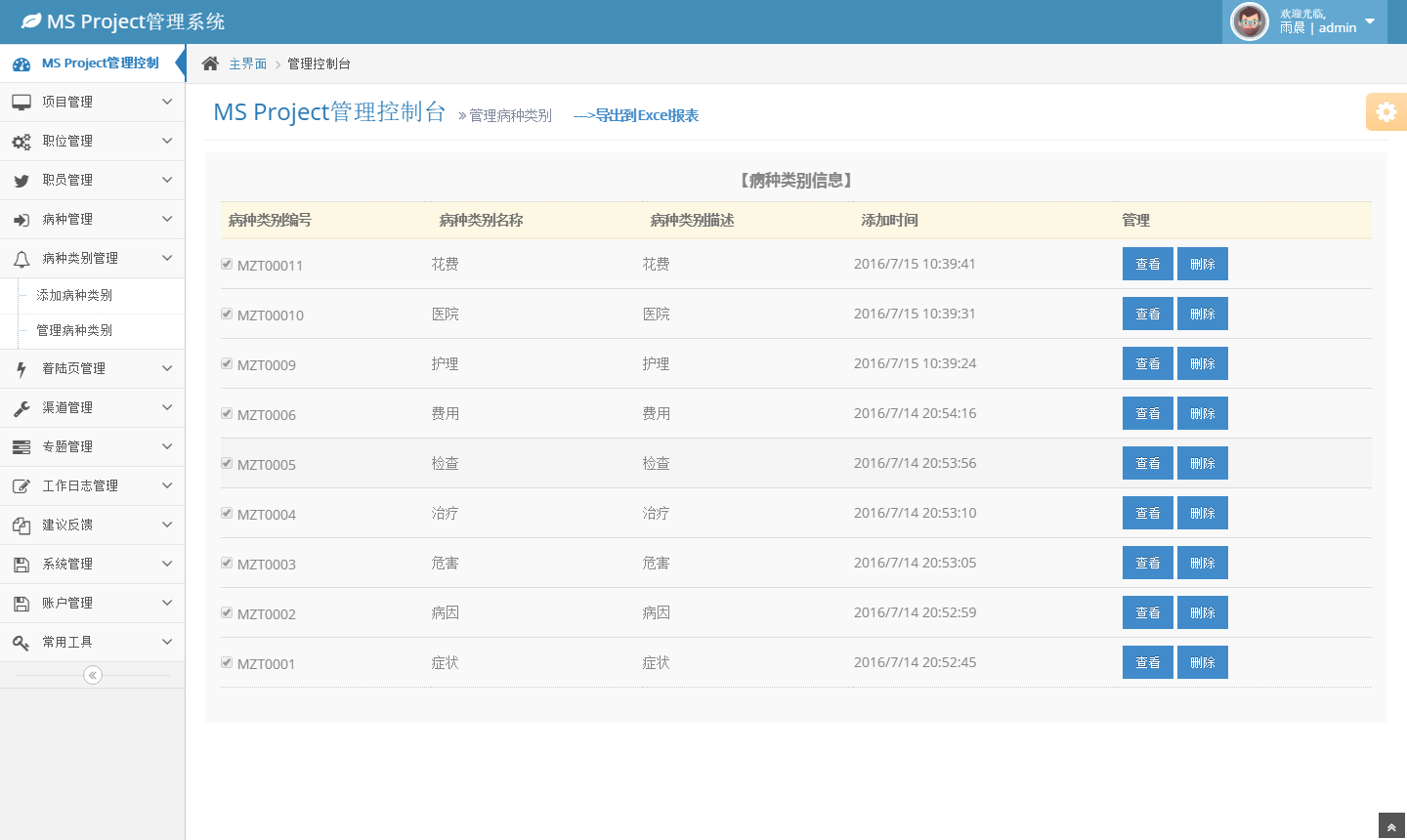 5,病种类别管理 (添加病种类别,管理病种类别)