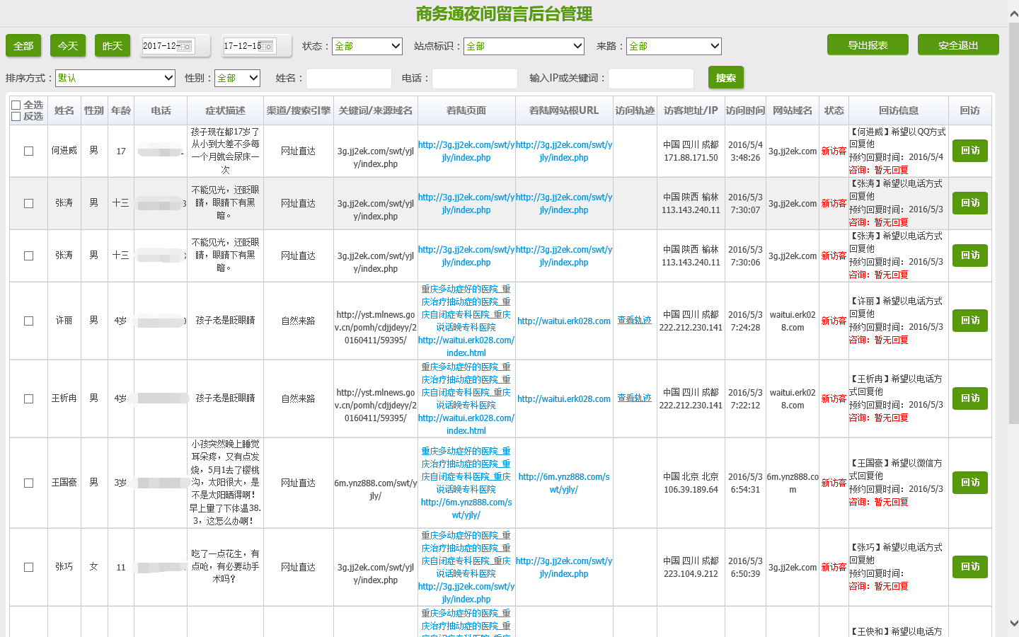 另一个问题是商务通需要设置自定义留言页面。同时每个项目的网站内部都需要添加相应的统计代码。这些数据最终会随着留言信息传送到后台。