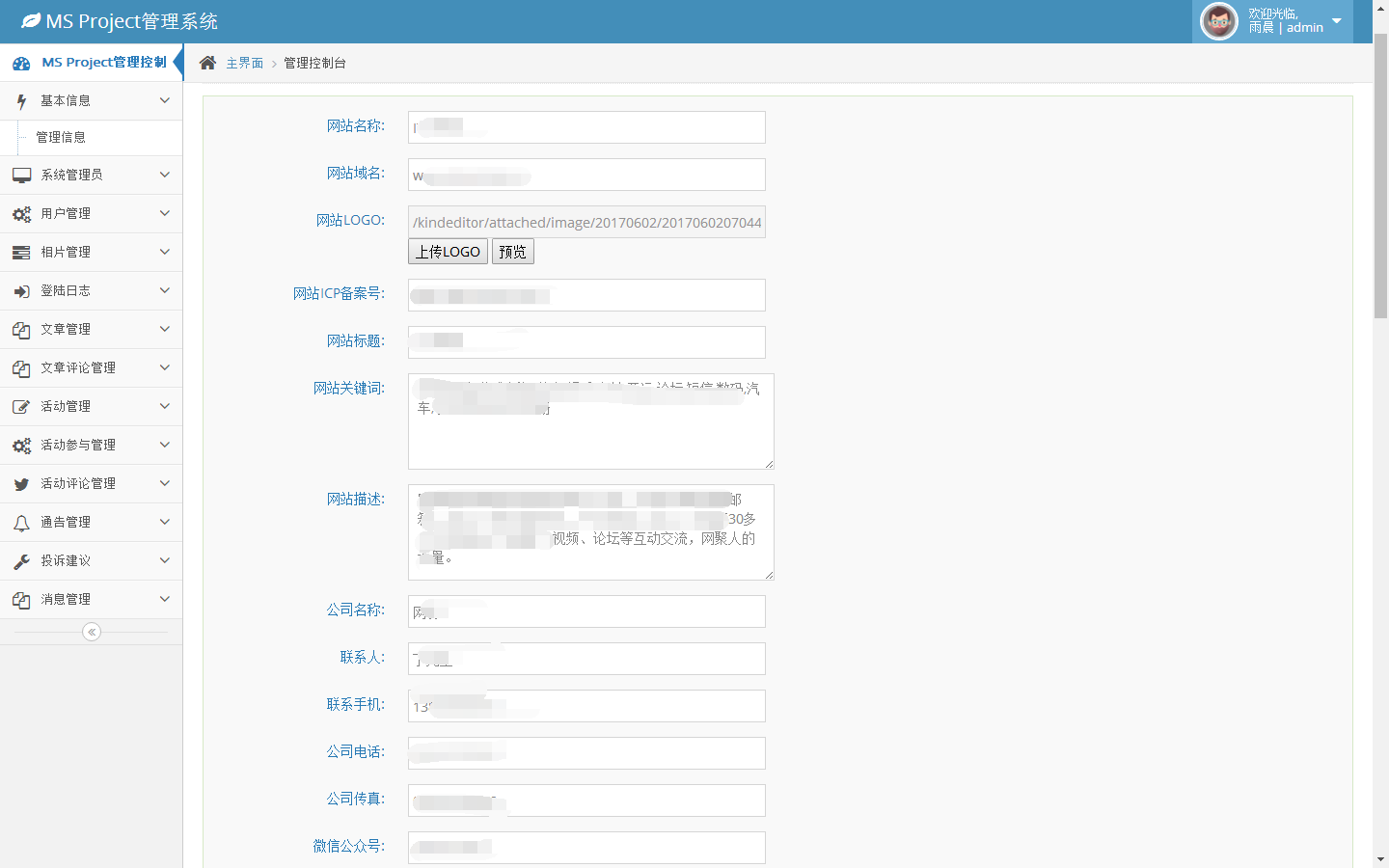 网站基本信息管理