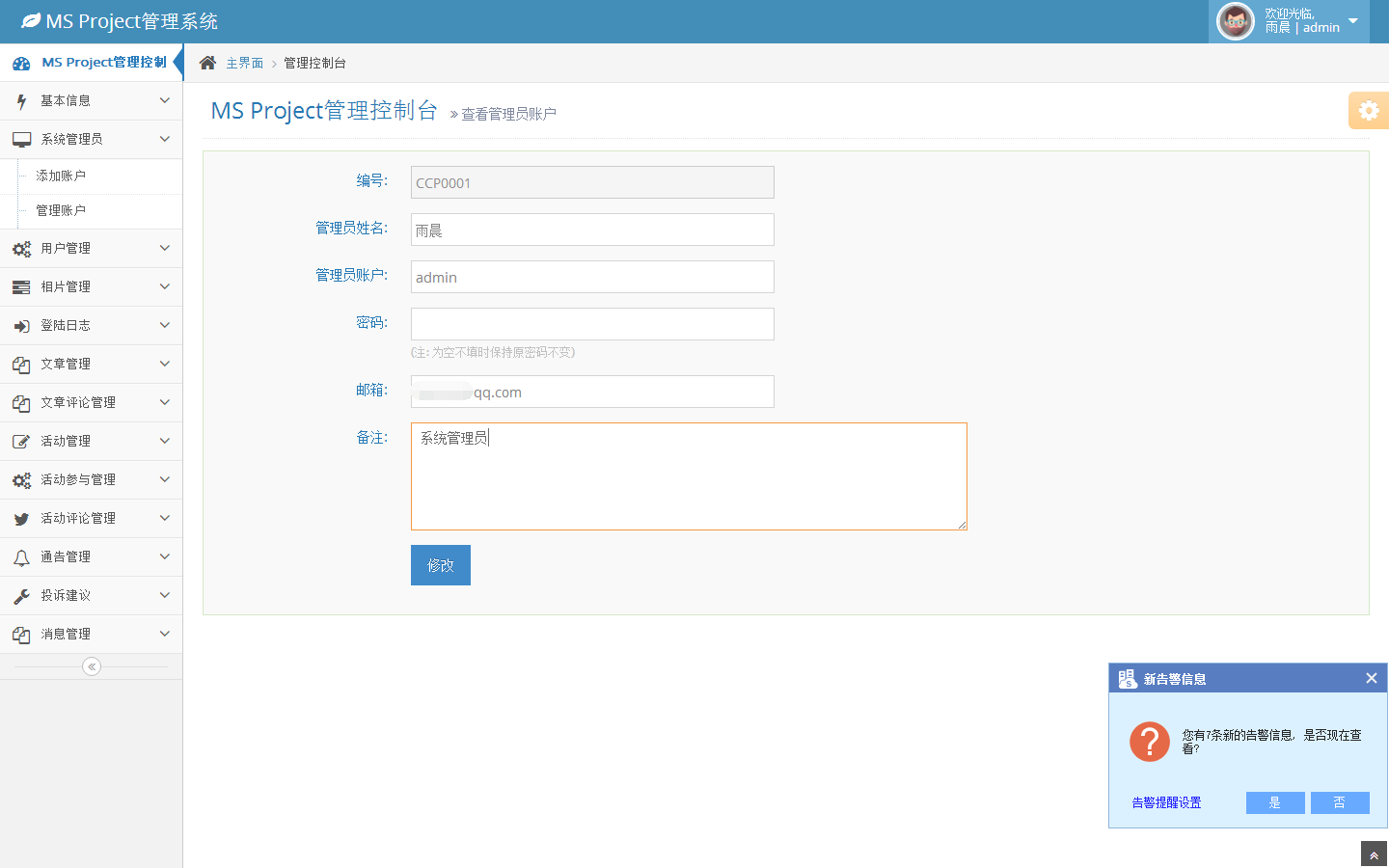系统管理员-修改管理员