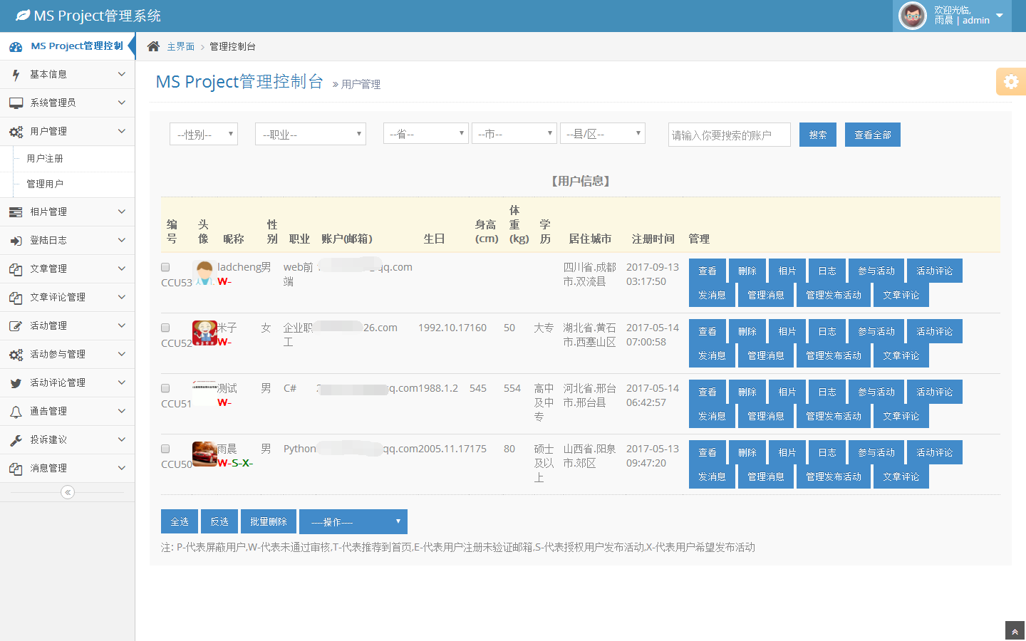 用户管理-用户列表