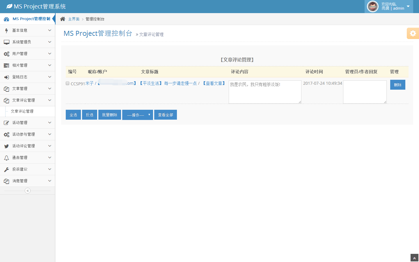 文章评论管理-评论列表