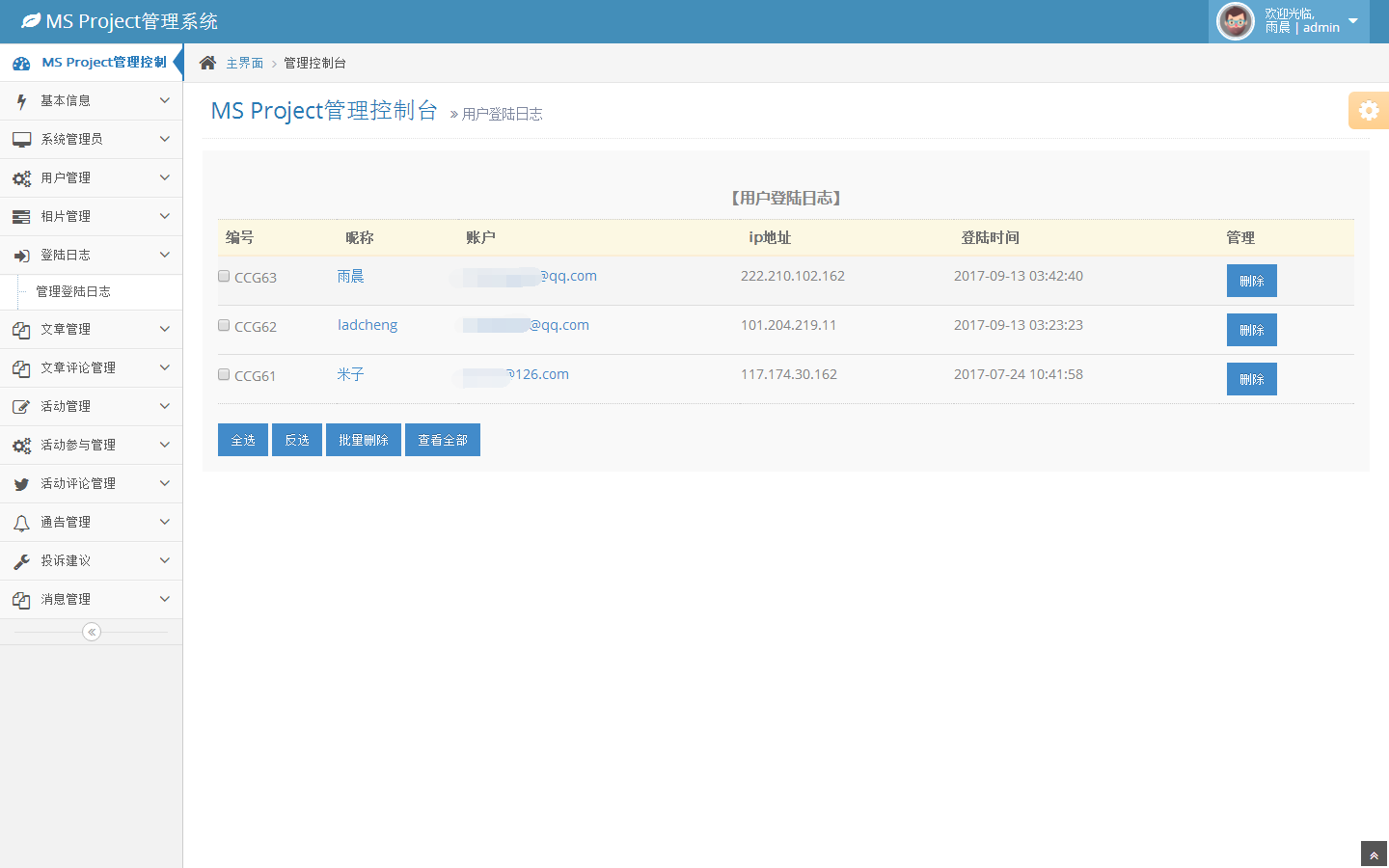 登陆日志管理