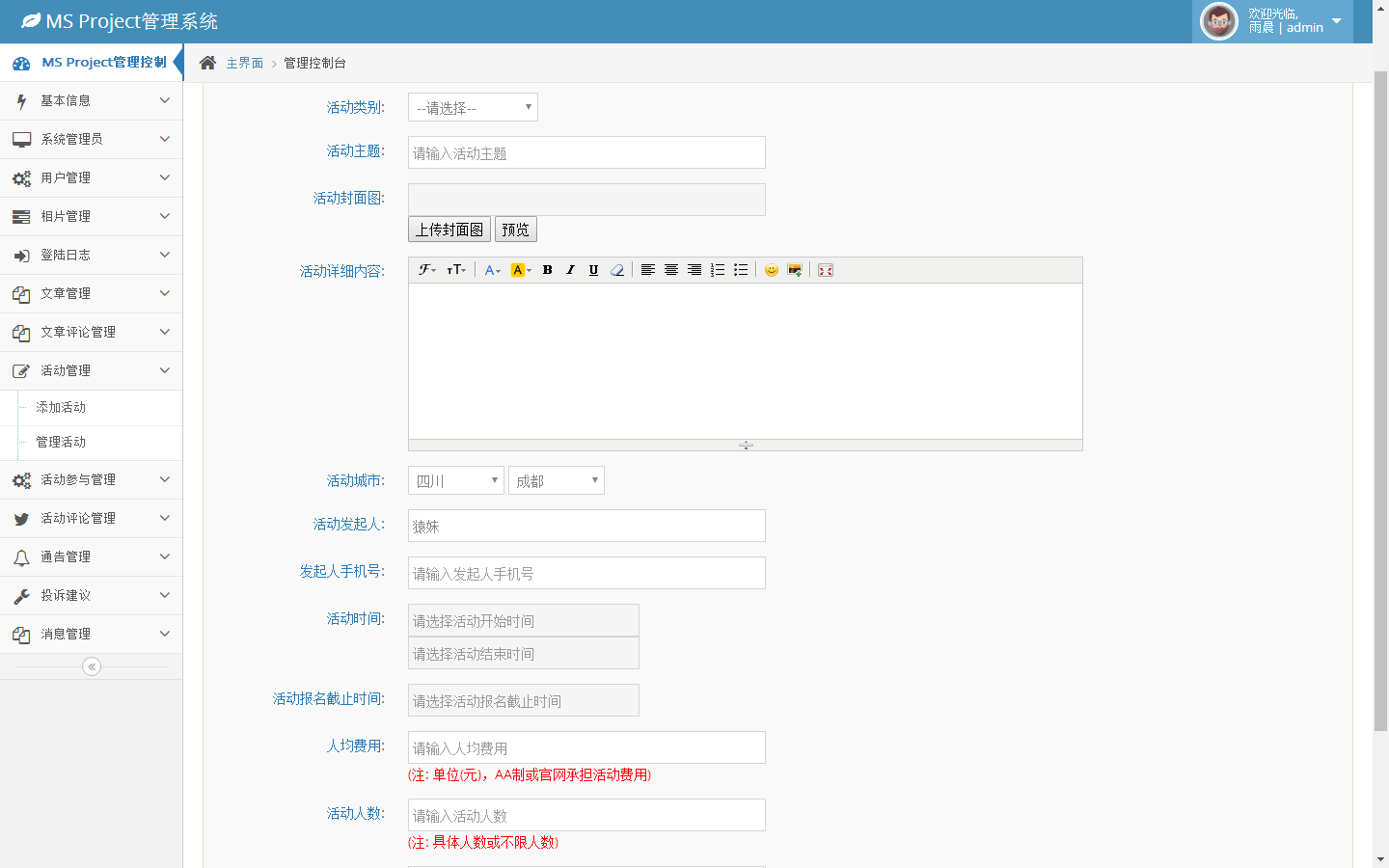 活动管理-添加活动