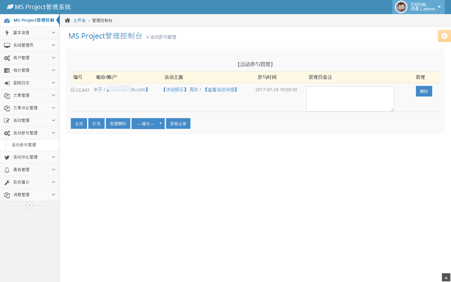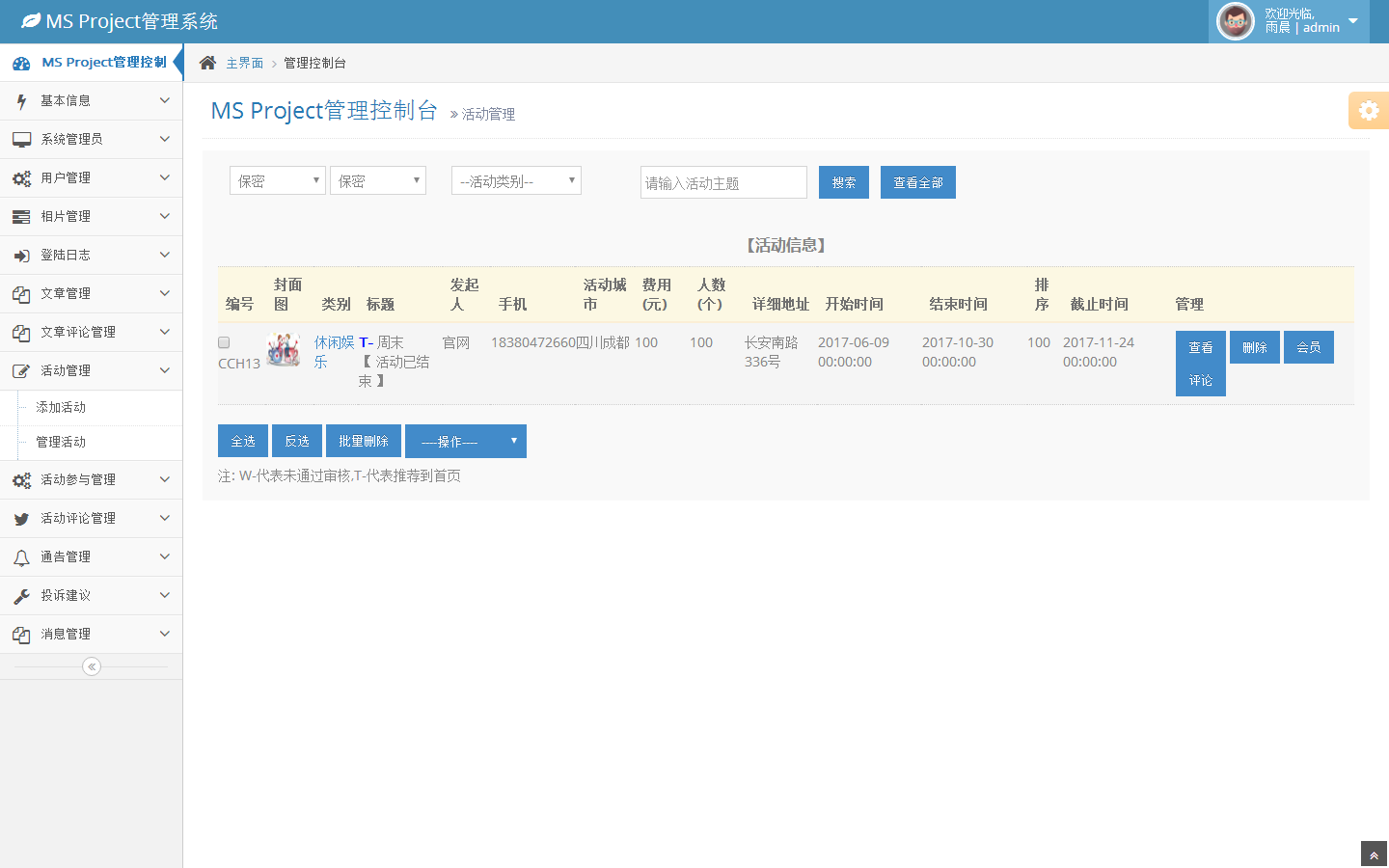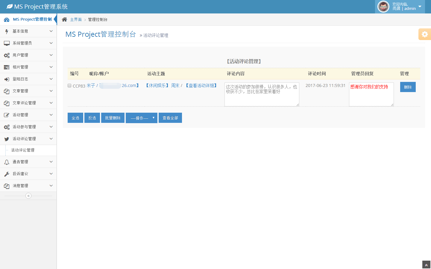 活动评论管理