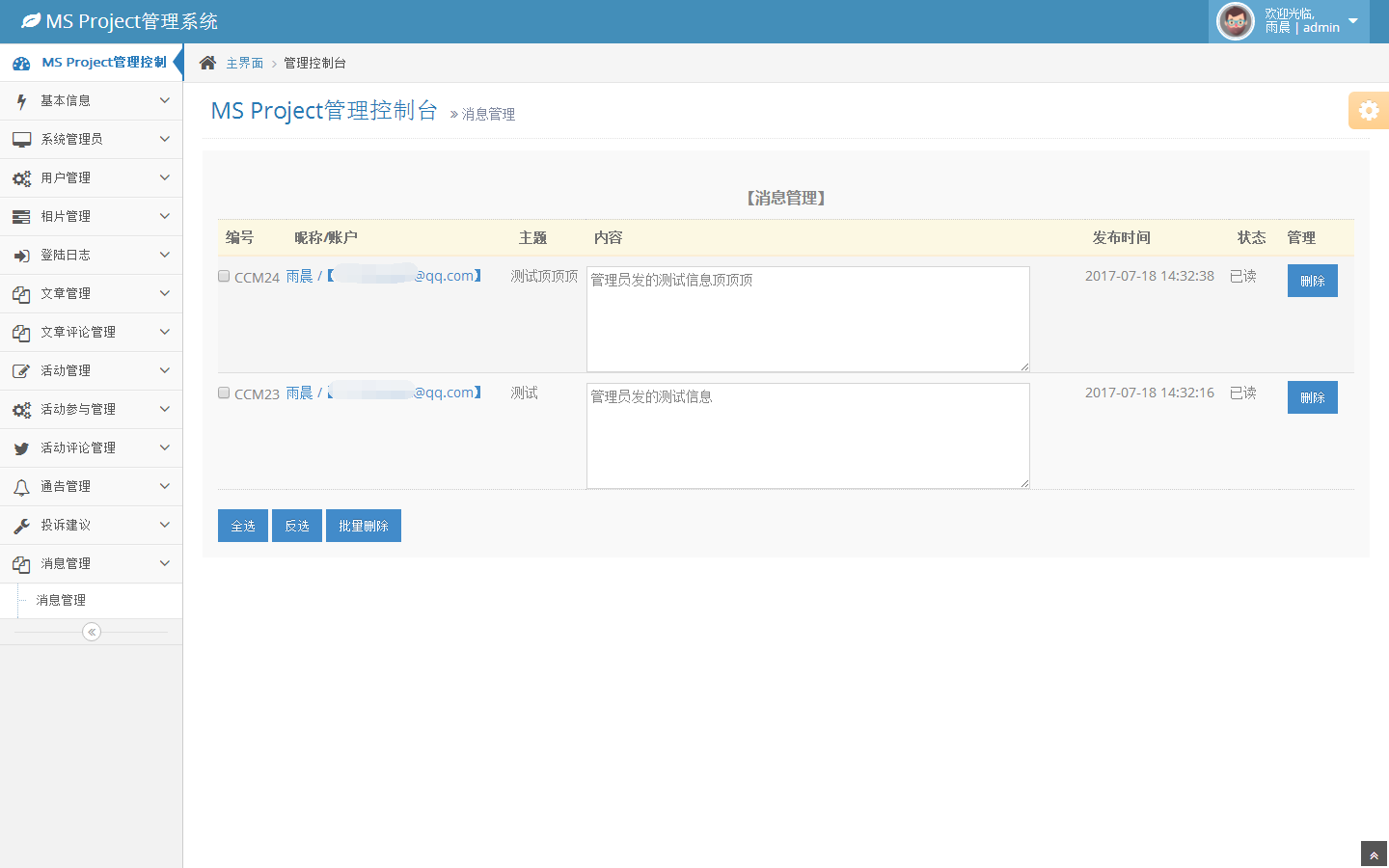 管理员消息管理