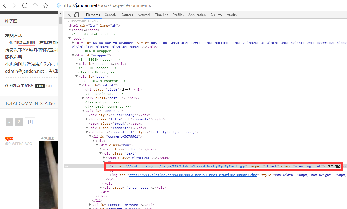 目标网址:http://jandan.net/ooxx/page-1#comments