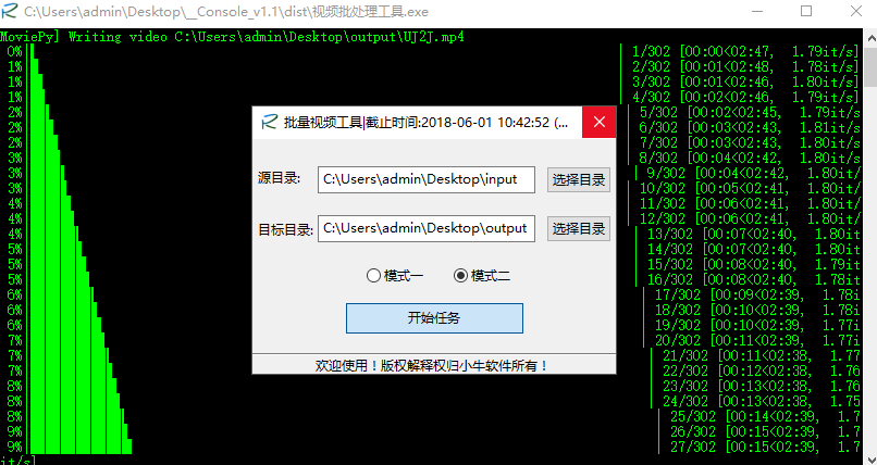 这个批处理软件主要使用了MoviePy模块。结合了数据库。获取用户计算机名及MAC地址生成机器码,来进行授权访问。