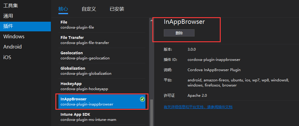 然后打开config.xml,在插件配置中添加“InAppBrowser”